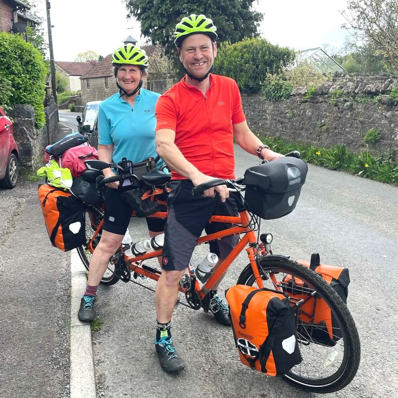 Perched on my saddle at the back I may be running Mission Control, but I have no brakes and no bell. As we descend this first steep hill, I find myself wondering if I am right to put my safety in his hands for the next 6 weeks. As the narrow hedge bound road falls away ahead of us, Chris’ head and shoulders wobble about 18 inches in front of me, partially obstructing my view. My body leans forward as the hill steepens, and I find myself momentarily crossing my fingers as I grip the rigid handlebars. To keep myself from knocking into Chris I concentrate on locking out my elbows while pushing against the bars- I can feel the force of gravity through my wrists and hands. In my head the “Anxiety chatter” is now in full flow. I find myself shutting my eyes and soothing myself by repeating over and over again, “We’ve done steep hills before -its ok, its ok, its ok – we’re safe, we’re safe”.