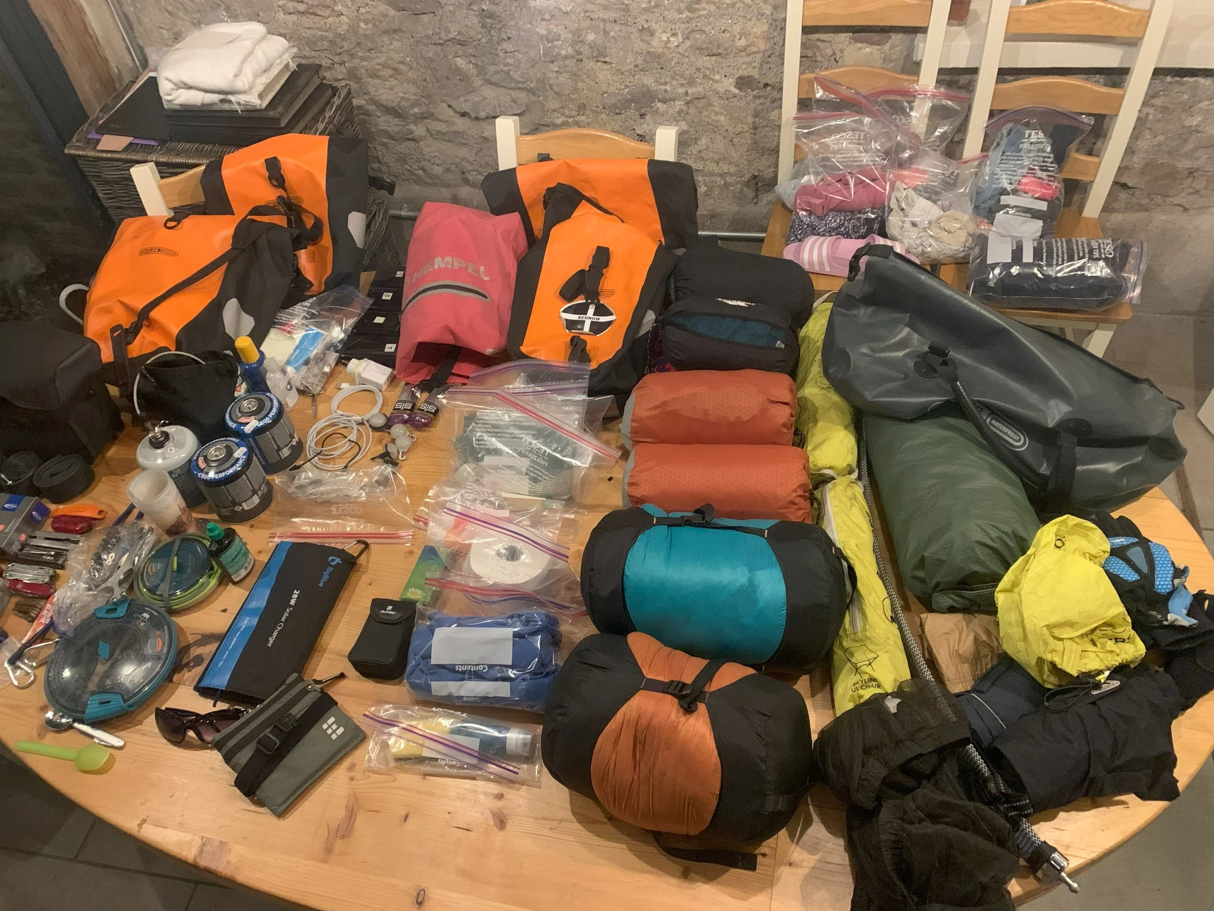 The spreadsheet has spoken; we’re off tomorrow. We’re unable to eat dinner at the table tonight, as it is buried beneath a colossal pile of cycling clobber. This has been caused by a multi-page spreadsheet ensuring we won’t forget anything.