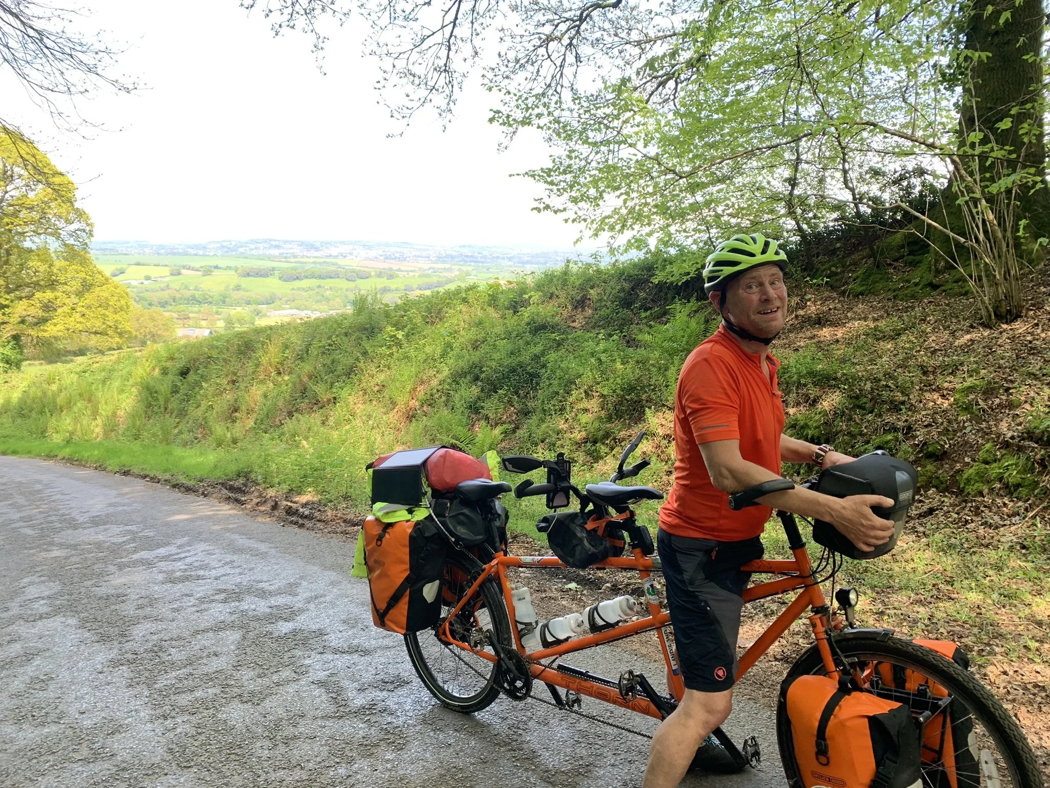 During a break, a couple of similarly aged cyclists come down the hill and stop for a chat. Kev and John are obviously not puffed because they are going downhill but they are also not puffed because they are on electric bikes, which right now seems like the best idea. Kev has a funky little low trailer on the back too; which, upon reflection, we think was stuffed with extra batteries. We make it to the top, and then in the normal Devonian way, the road heads straight downhill again.